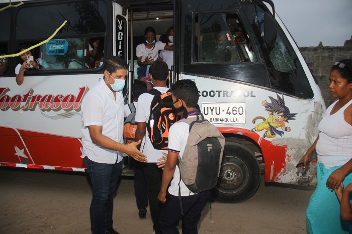El mandatario afirmó que, luego de hacer un estudio, de 5 buses contratados la Administración decidió aumentar a 9, incluyendo una ruta exclusiva para transportar a más estudiantes, desde la I.E. La Aguada hasta la sede del Servicio Nacional de Aprendizaje – Sena en Malambo.