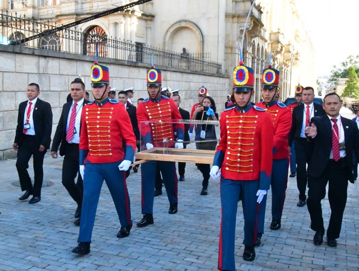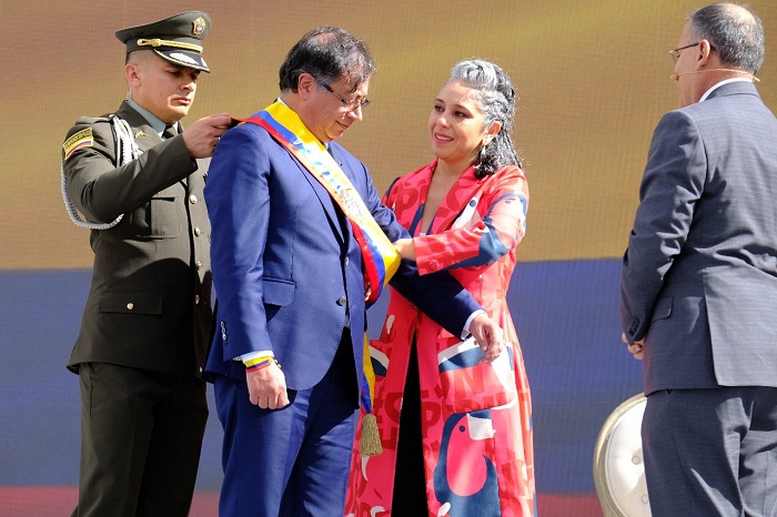 Gustavo Petro y Francia Márquez fueron investidos este domingo como presidente y vicepresidenta de Colombia por el presidente del Senado de Colombia, Roy Barreras, acto que contó con la participación de la filarmónica de Bogotá, la espada de Bolívar, invitados internacionales y miles de asistentes en la histórica Plaza de Bolívar.