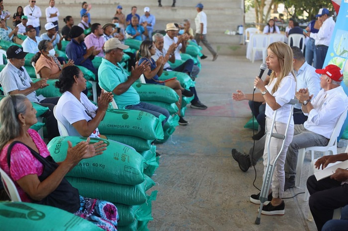 “Hoy estamos entregando 180 suplementos alimenticios para los pequeños ganaderos. Con este alimento, con silo y concentrado, van a poder alimentar a sus animales durante estos dos meses de sequía porque la lluvia viene hasta mayo. No queremos vacas flacas, sino vacas bien alimentadas para que puedan aumentar su producción de leche y mejoren los ingresos de nuestros ganaderos. Ya esta es la tercera versión y tenemos el gran apoyo tanto del Ministerio de Agricultura como de Agrosavia y del operador COA, lo cual ha sido fundamental para que cada vez más ganaderos puedan tener un mayor volumen de alimentos que les permita aumentar su productividad”, explicó la mandataria.