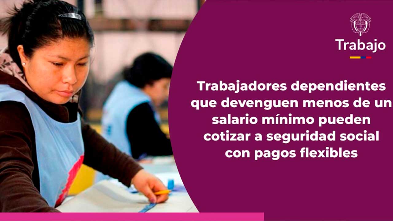 El ministerio del Trabajo anunció que queda en firme el esquema de cotización a la seguridad social que permite a trabajadores dependientes con ingresos inferiores a un salario mínimo, realizar aportes a pensión, riesgos laborales y a cajas de compensación familiar por periodos inferiores a un mes.