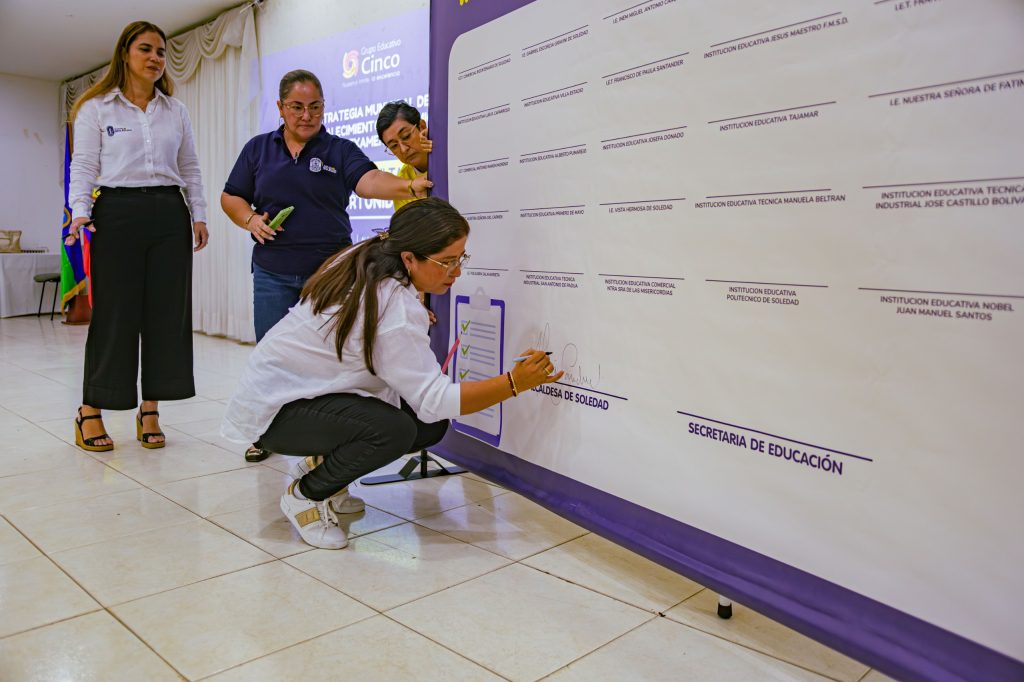 El acto se desarrolló en la IE. ITIDA, donde la alcaldesa Alcira Sandoval Ibáñez, la secretaria de Educación Carolina Correa, rectores de las instituciones educativas y representantes del Grupo Educativo Cinco, firmaron un acta de compromiso común, para hacer de los resultados una transformación educativa en Soledad, reconociendo que cada dato, diagnóstico y evaluación no son el punto final sino el inicio de decisiones más constantes y rigurosas enfocadas en el crecimiento académico e integral de los estudiantes.