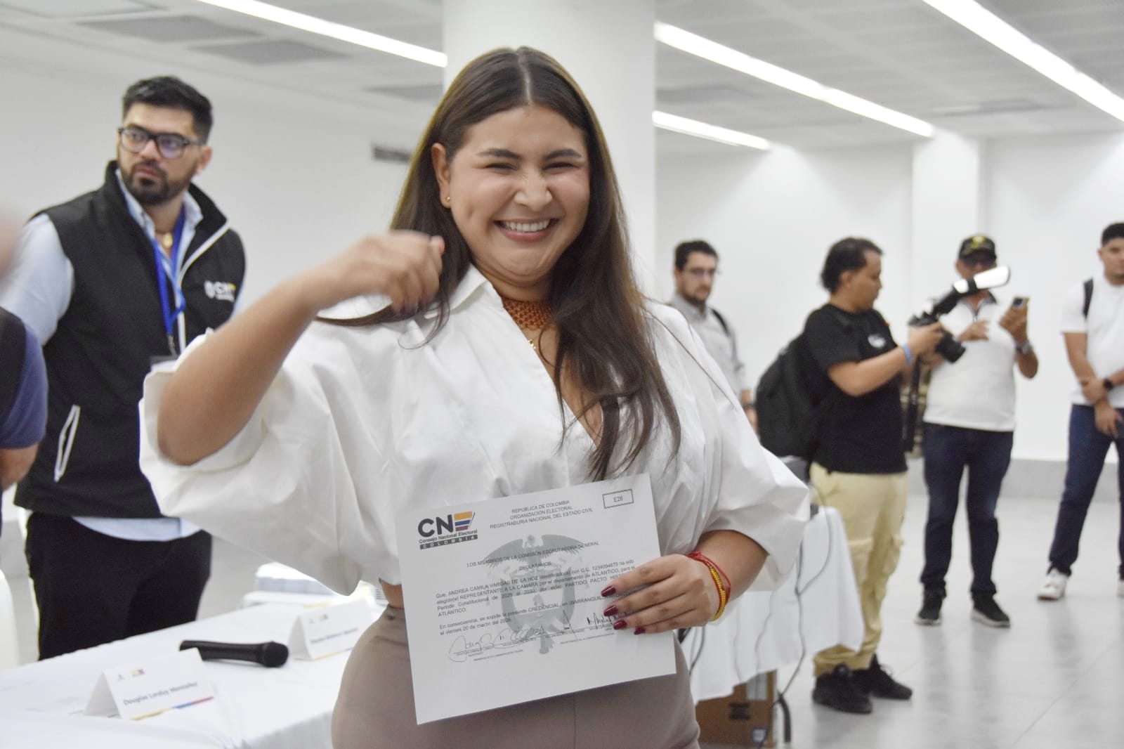 En la ceremonia de entrega de credenciales a los representantes a la Cámara por el Atlántico, Andrea Vargas recibió oficialmente su acreditación como congresista electa, destacando que su llegada al Congreso representa un compromiso colectivo y una responsabilidad con todo el departamento.